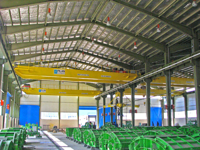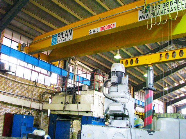 در اين صنايع قطعات با کيفيت بالا تا وزن 200 تن براي توليد توربين و ژنراتور به صورت ميلي متري و با امنيت کامل جا به جا ميشوند. علاوه بر اين يک قلاب (وينچ) به صورت جداگانه براي عمليات کمکي بر روي جرثقيل نصب شده است. (جهت برگرداندن قطعه)