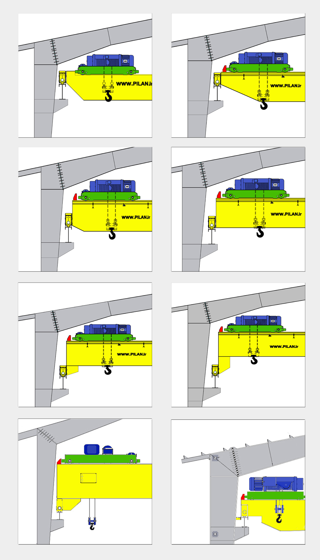 این نوع جرثقیل با نصب بالابرهاي بکسلي ودرتناژهاي پايين تر از 10 تن قابليت نصب بالابرهاي زنجيري را نيز دارند