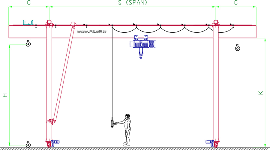 جرثقيلهاي نيمه و تمام اتوماتيک متحرک (دروازه اي) پيلان که داراي يک يا دو پل اصلي هستند با اطمينان کامل بار شما را جا به جا ميکنند. جرثقل دروازه ای را ميتوان به راحتي در هر محلي نصب نمود. به عنوان مثال ميتوان آنها را در کارگاهها يا زير پل نصب کرد. اين راه حل زمان انتظار براي نصب دستگاه را از بين ميبرد و همچنين از انعطاف پذيري و عملکرد مناسبي در واحد مربع برخوردار ميباشند.