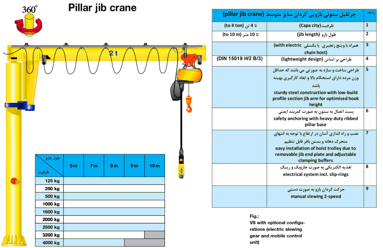جرثقیلهای بازویی و ستونی اغلب به صورت یکپارچه عرضه میشوند.