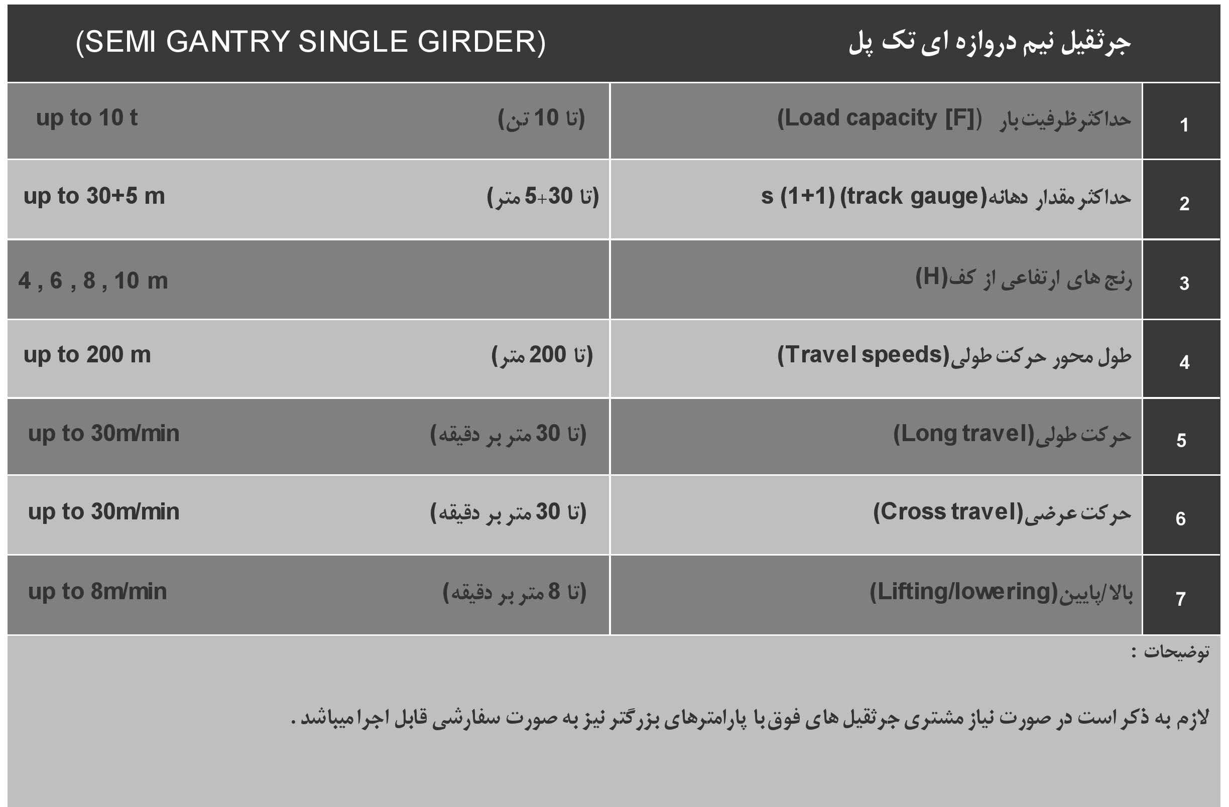 دست يابي به جرثقيل هاي دروازه اي يا نيمه دروازه اي جهت بهره برداري بهينه از فضاهاي موجود و کاهش هزينه ها بسيار مناسب هستند .